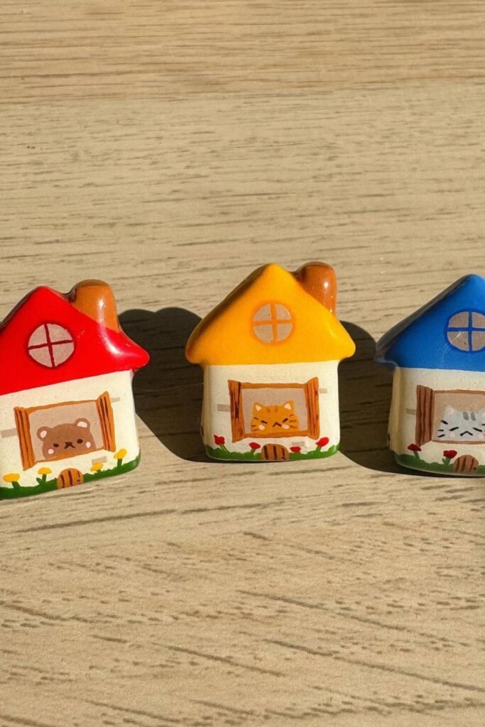 Create adorable Miniature Clay Cat Houses that are perfect for cat lovers. Mold small houses from clay, carve out windows and doors, and paint them in bright colors. Add small clay cats peeking from the windows.